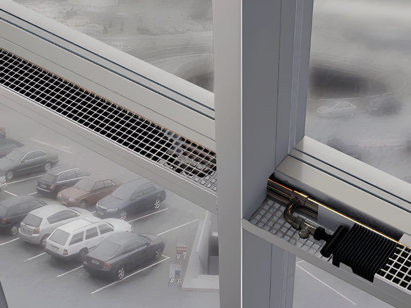 В современной архитектуре все чаще и чаще встречается применение фасадных технологий, сплошных остекленных поверхностей. Из-за относительно высоких теплопотерь через огромные остекленные фасады в помещении возникает дефицит комфорта, сильные ниспадающие потоки холодного воздуха с поверхностей остекления, воздействие лучистого охлаждения поверхностями стеклянных ограждений. В случае использования в качестве наружных ограждений остекленного фасада, проектировщиков и архитекторов часто волнует вопрос отопления. Отопительные приборы, установленные под стеклянным фасадом не дают должного теплового потока для экранирования от холодных поверхностей остекления. Фасадные системы обогрева Varmann Fassaden Klima препятствуют ниспадающему потоку охлажденного воздуха от "холодных" поверхностей стеклянного фасада, прогревают поверхность стекла, обеспечивая условия отсутствия конденсата, обеспечивают отсутствие лучистого охлаждения в помещении. Устанавливаются как на ригельную систему, так и с креплением к стойкам фасада. Каждый запрос рассматривается индивидуально. В зависимости от установленной фасадной системы и системы отопления, требований архитекторов и дизайнеров, c помощью системы фасадного обогрева Varmann появилась возможность создать необходимый тип системы нагрева стеклянного фасада, детально проработав варианты прохода системы через вертикальные стойки, угловые соединения.